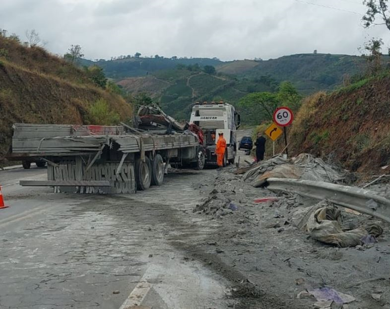 cimento tombou na BR-146, conhecida como "Serra de São Pedro".